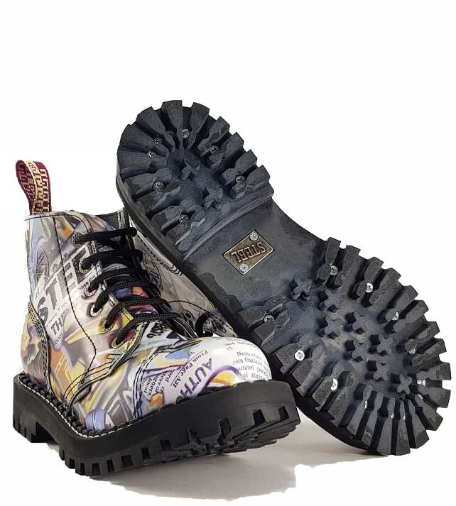 Bocanci Steel cu 8 Inele Graffiti, partea superioară din piele, talpă din cauciuc dur, cusături...